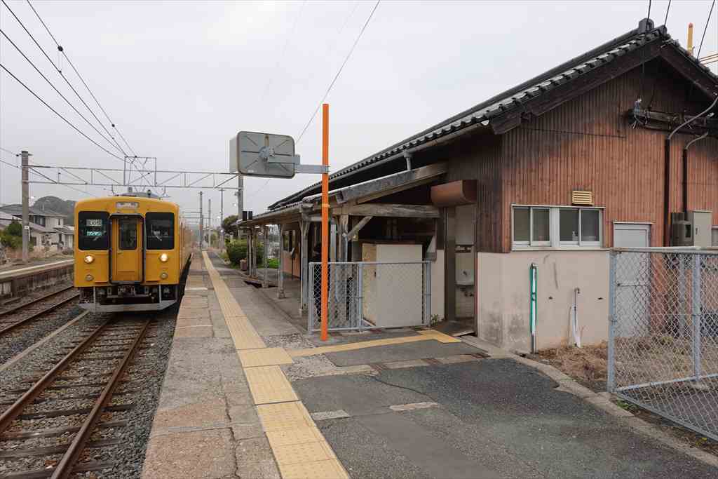 深溝に着く。深溝は2面2線の交換可能駅。待っているのは新山口行き普通列車。