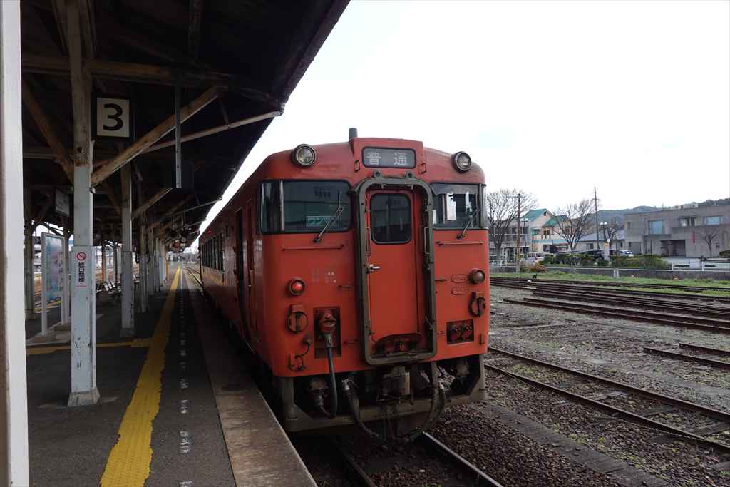 折り返しの長門市行きがそろそろ出る時間だ。折り返し時間はわずか7分で、10時21分に出る。気になるのは右に見える2キロポスト。長門市-仙崎間の営業キロは2.2キロなのだが、これはどういうことなのだろう?