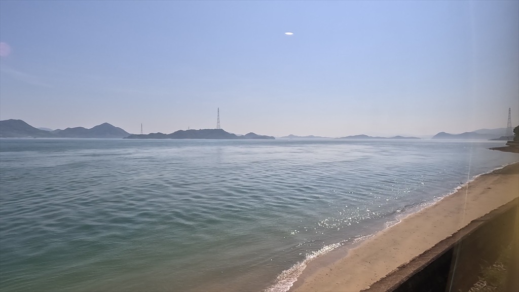 呉ポートピアパークと大きな工場を抜けると再び海が見える。空はまだまだ明るいけど、だいぶ陽が傾いてきた。