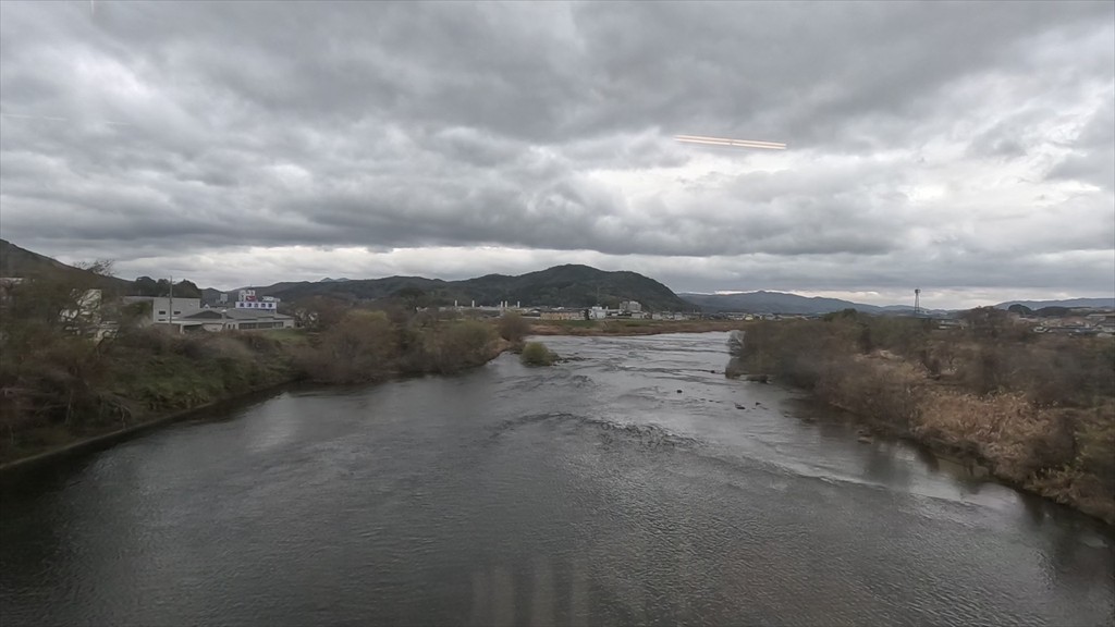 ここから列車は右へカーブして、久世方面へ向かおうとする。ところで、水運で栄えたという割に田んぼの画像ばかりで申し訳ないが、ここから川に沿って走る。それは旭川で、福渡で別れた川とまさかの再会である。落合から旭川を利用して物資を運んでいたのだ。