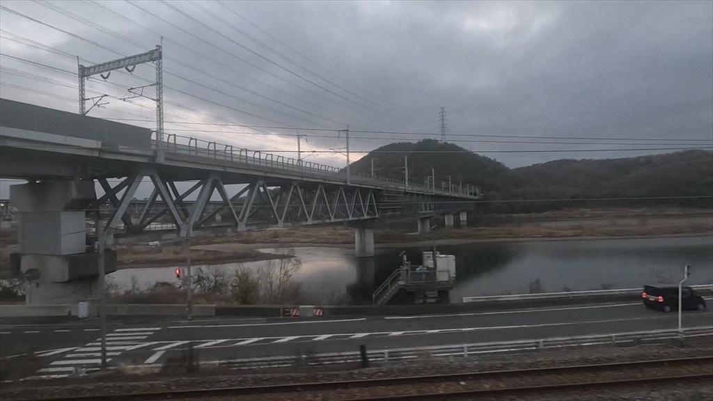 トンネルを抜けると高梁川に沿う。曇りがちで太陽を拝むことはなかったが、その分、暗くなるのも早そうだ。