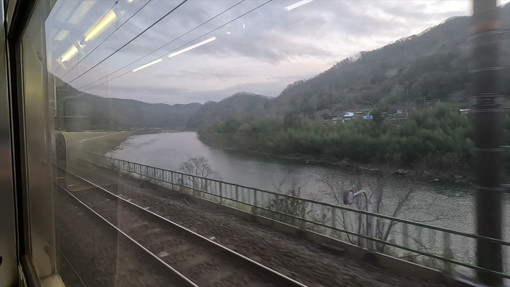 16時59分、倉敷に着く。ここでもさらに乗ってきて立ち客が増える。