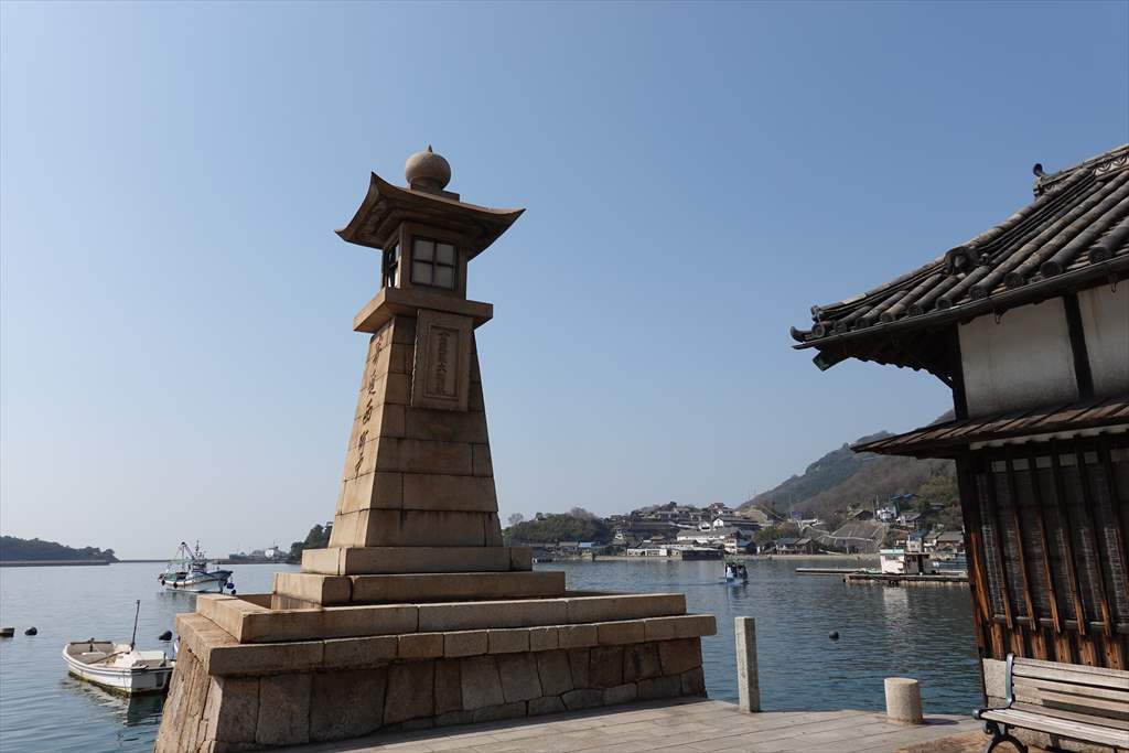 こちらかだと常夜燈、雁木、蔵といった鞆の浦を形成する遺構の様子がよく分かる。