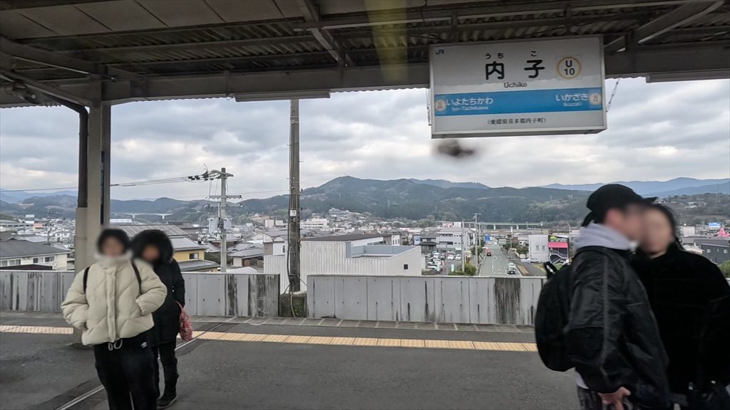 ここで松山発内子経由の伊予大洲行きと交換し、伊予大洲発内子経由の松山行きを追い抜く。なので、満線状態になっている。