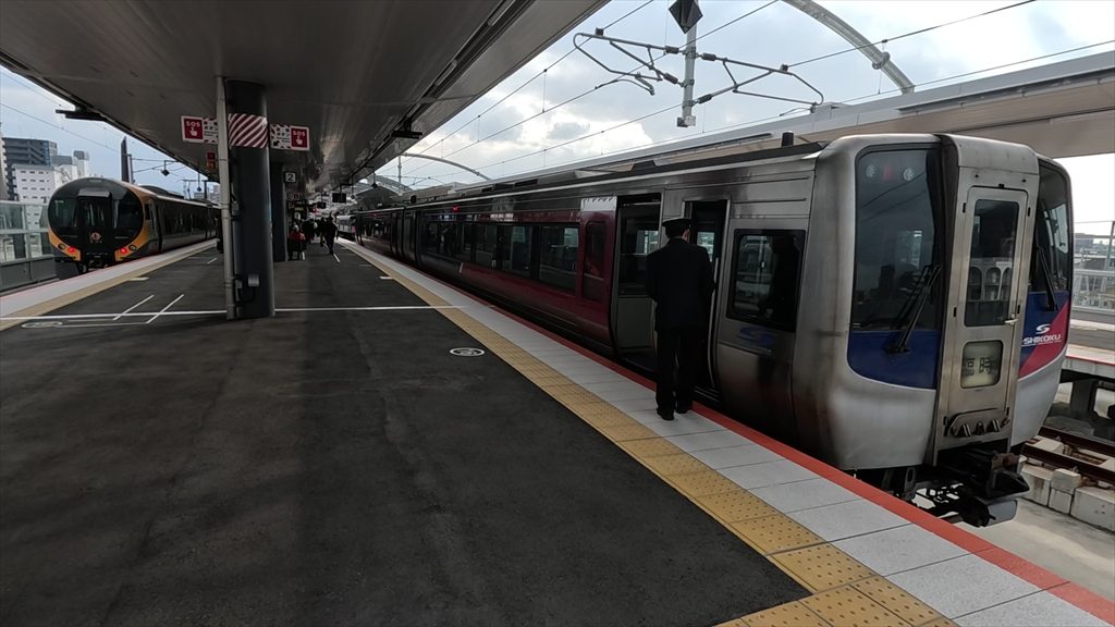 15時09分、伊予市に着く。相対ホーム1、島式ホーム1の2面3線の構造を持っており、予讃線はここから電化区間に入る。伊予市は1930(昭和5)年に松山から延伸されて開業、1932(昭和7)年に海岸回りで伊予上灘までが延伸されている。