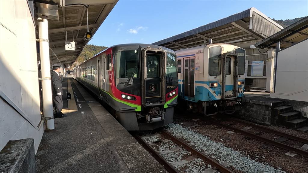 土佐久礼は島式ホームの1面2線の駅だ。構内は広めだけど、のりばは2つしかない。延伸の予定があったからなのだろう。
