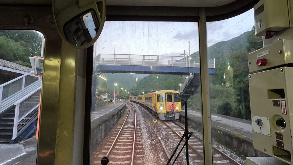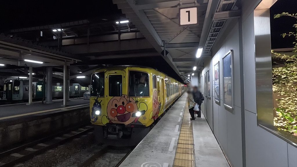 昼間に乗って車窓風景を楽しむことを旨とする私がこんな時間の列車に乗るなんて滅多にないことだ。それだけに新鮮でもある。学生の頃の旅では夜行列車に乗るまでの時間つぶしに夜の列車に乗ることがあり、懐かしくもあった。我が列車は大歩危で18時19分まで24分停車する。こんなに長く停車する列車に乗るのも久しぶりだ。
